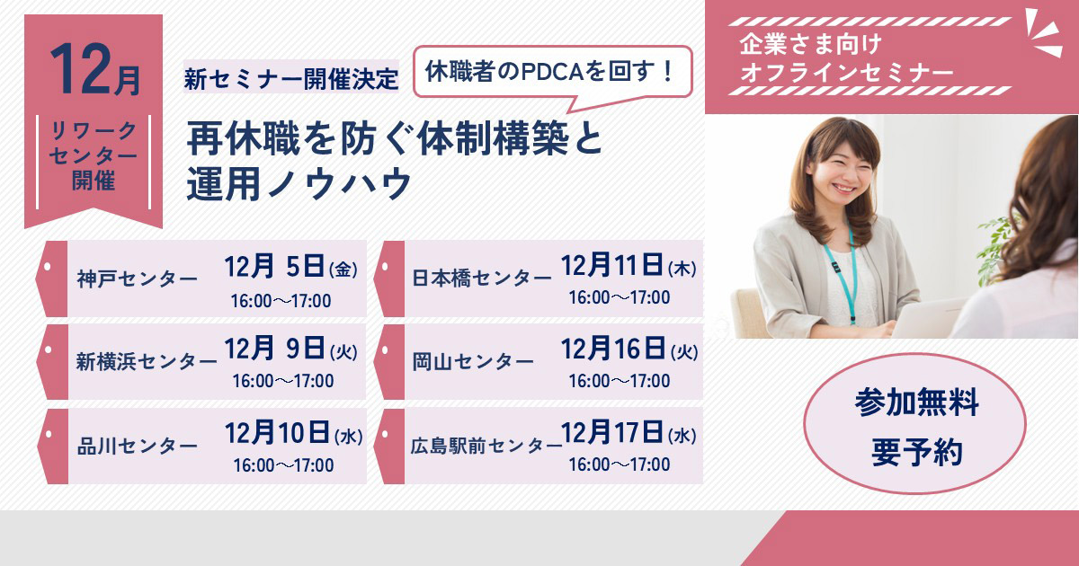 【オンライン開催!】リワークセンター徹底活用術:復職支援の成功事例と実践方法